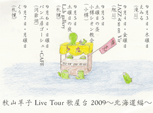 | 2014.7.25 | くう(札幌・西18丁目) | 北海道ツアー2014〜君が描いた地図〜 秋山羊子(vo, pf) |