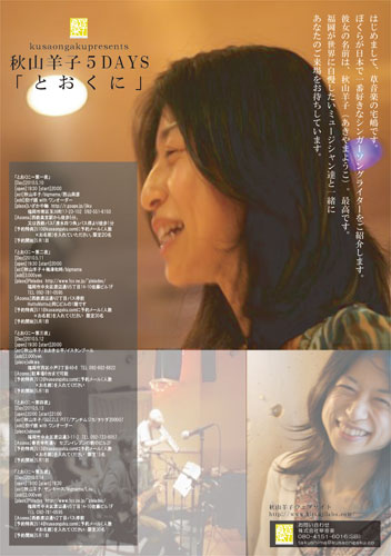 | 2005.10.04 | 四谷天窓.comfort | 秋山羊子(vo, pf) |